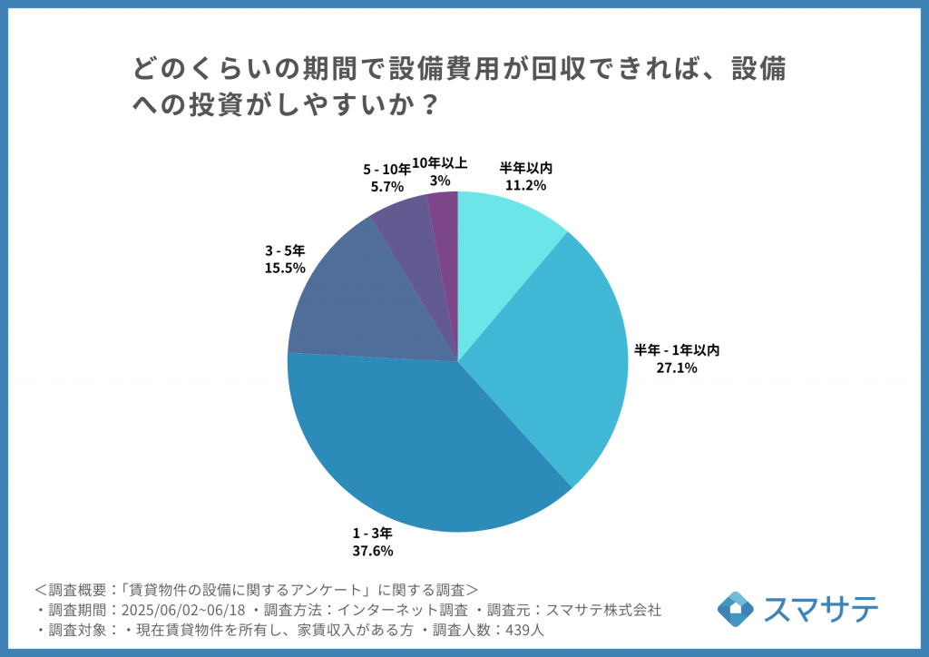 「3年以内で費用を回収できれば投資しやすい」と回答したオーナーが全体の75%以上を占めた。その中でも「1〜3年以内」という回答が最も多かった。