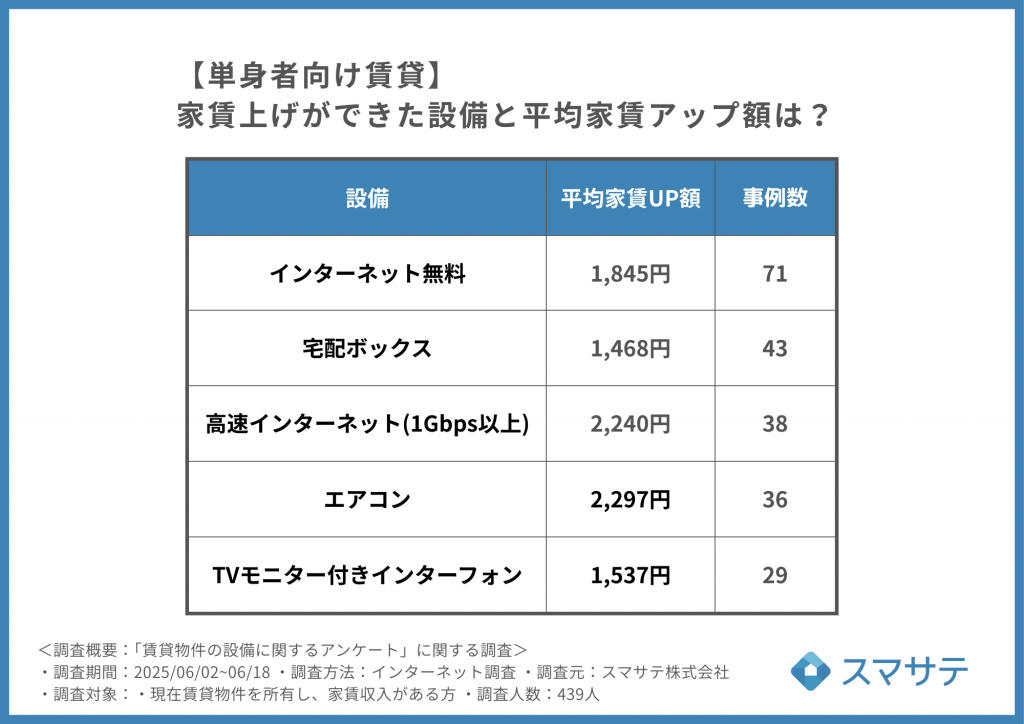 賃貸不動産オーナー439名の声をもとに、家賃が上げられた設備を公開